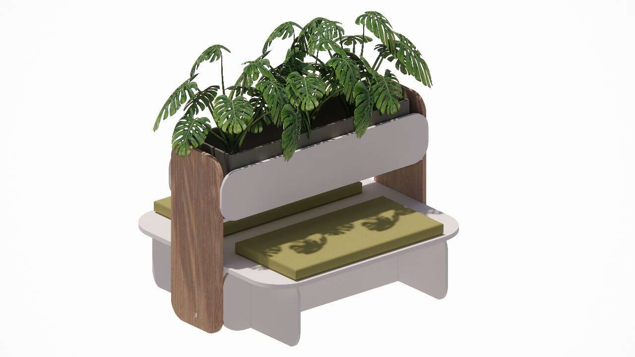 Sua grande variedade permite 3 tipos de uso, sendo para paisagismo, assentos ou arquivamento, criando em si, as funções de bem-estar, colaboração e organização.