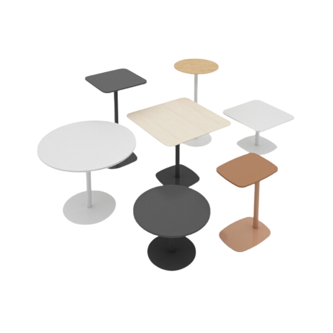Em várias alturas e medidas, elas podem ser utilizadas em diversas áreas dos projetos como mesas de reunião, café, apoio, laterais, centrais, para note book, entre outras.